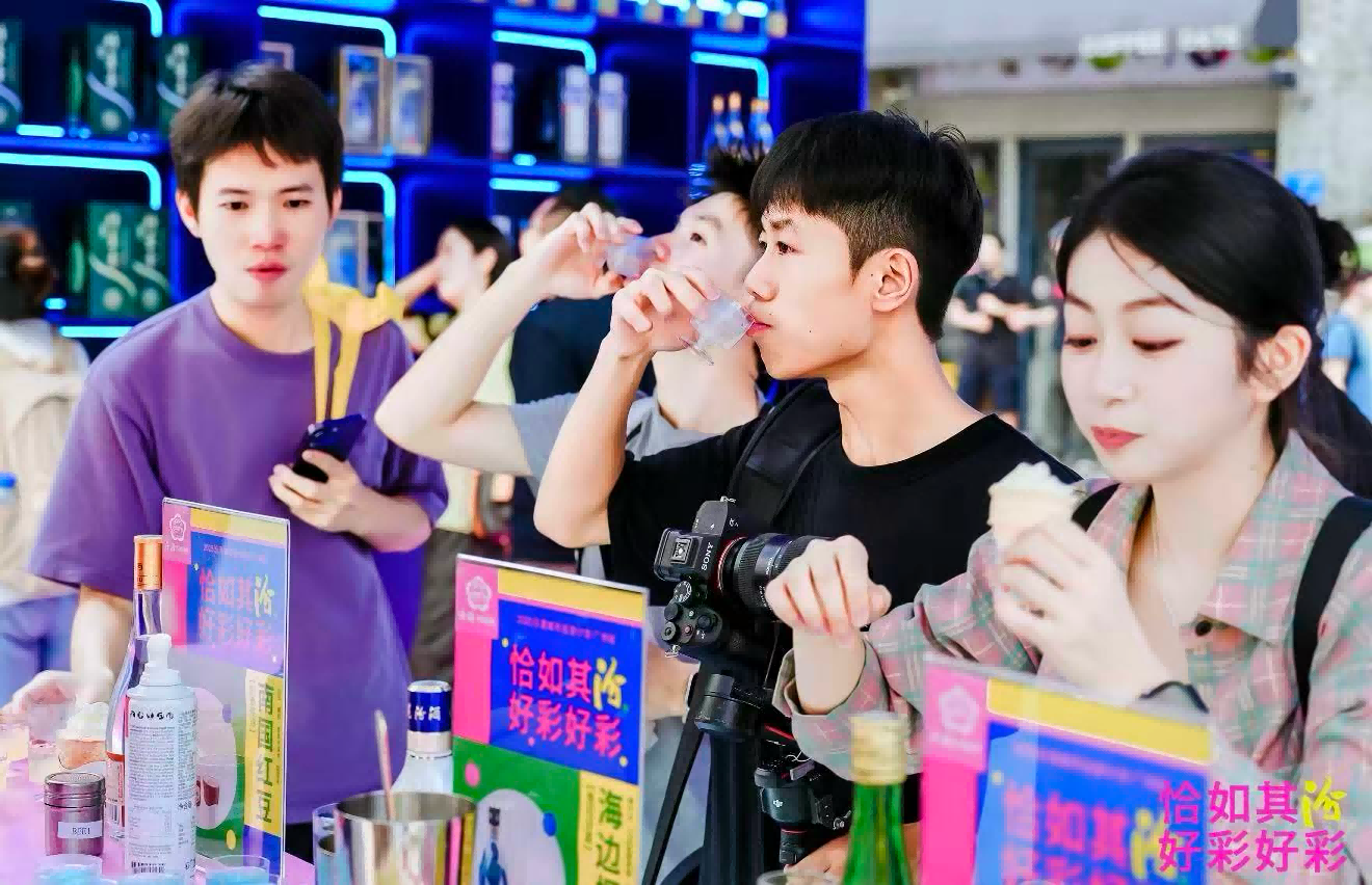 以青花汾酒为基酒的特调鸡尾酒吧台前,更是人头攒动,年轻人手捧“海边探戈”“南国红豆”等特调创意饮品,在微醺中畅聊,构成了永庆坊生动一景,让行业感慨,汾酒正“沉浸式、体验式”圈粉年轻世代。